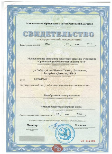 1лицензия.pdf Документ подписан электронной подписью Серийный номер 603332450510203670830559428146817986133868575943 Директор/Заведующий Шахбанов Хумаид Набигулаевич Дата подписания документа 27.02.2021 12:16:37 (скачать) (посмотреть)